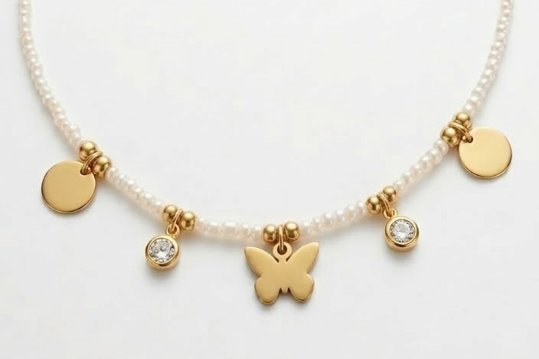 Välj mellan en snygga kedjor i rostfritt stål med 18 k guldplätering eller härliga pärlor och seedbeads i olika storlekar - designa ditt eget unika halsband.
